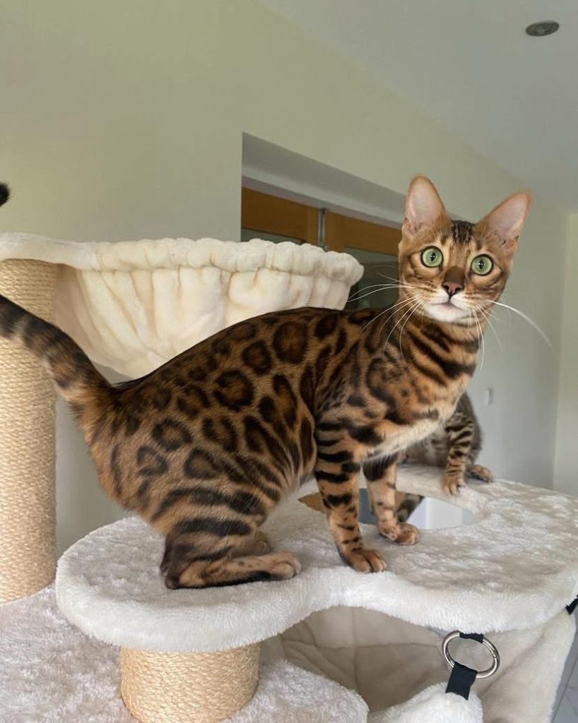How to prevent mischief-Providing outlets for a Bengal’s energy keeps them happy: Interactive toys and puzzle feeders, Cat trees and climbing shelves, Regular play sessions, Training and tricks, Leash walks or supervised outdoor exploration. A well-stimulated Bengal is playful and curious—but rarely destructive.